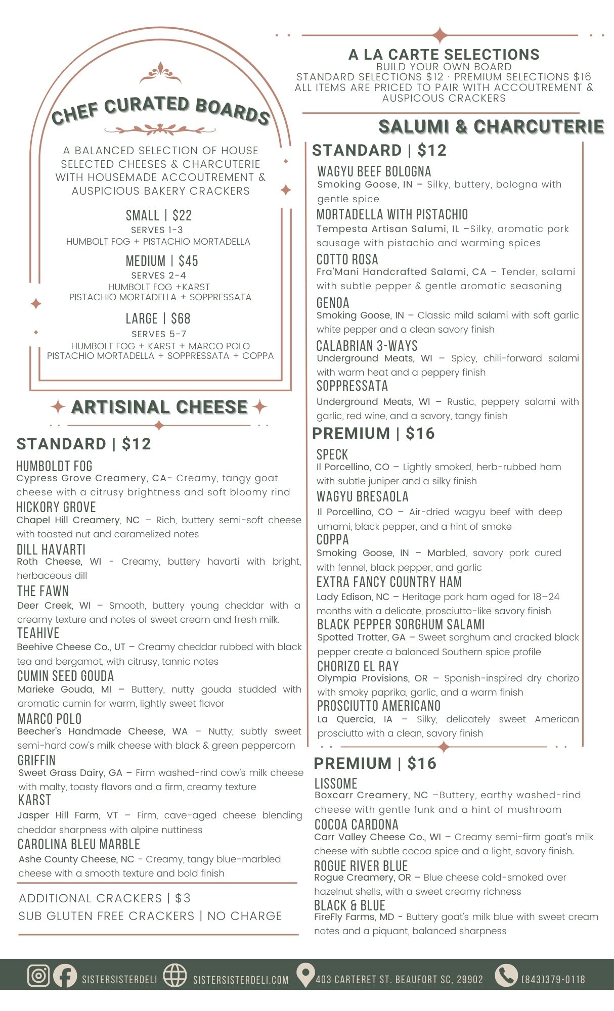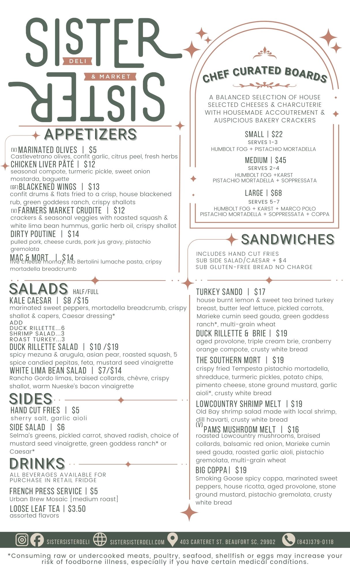 Sister Sister is a gourmet provisions market & deli dedicated to exceptional American-made ingredients. We specialize in cheese and charcuterie sourced from small-batch producers whose thoughtful, sustainable practices support a stronger local food system.